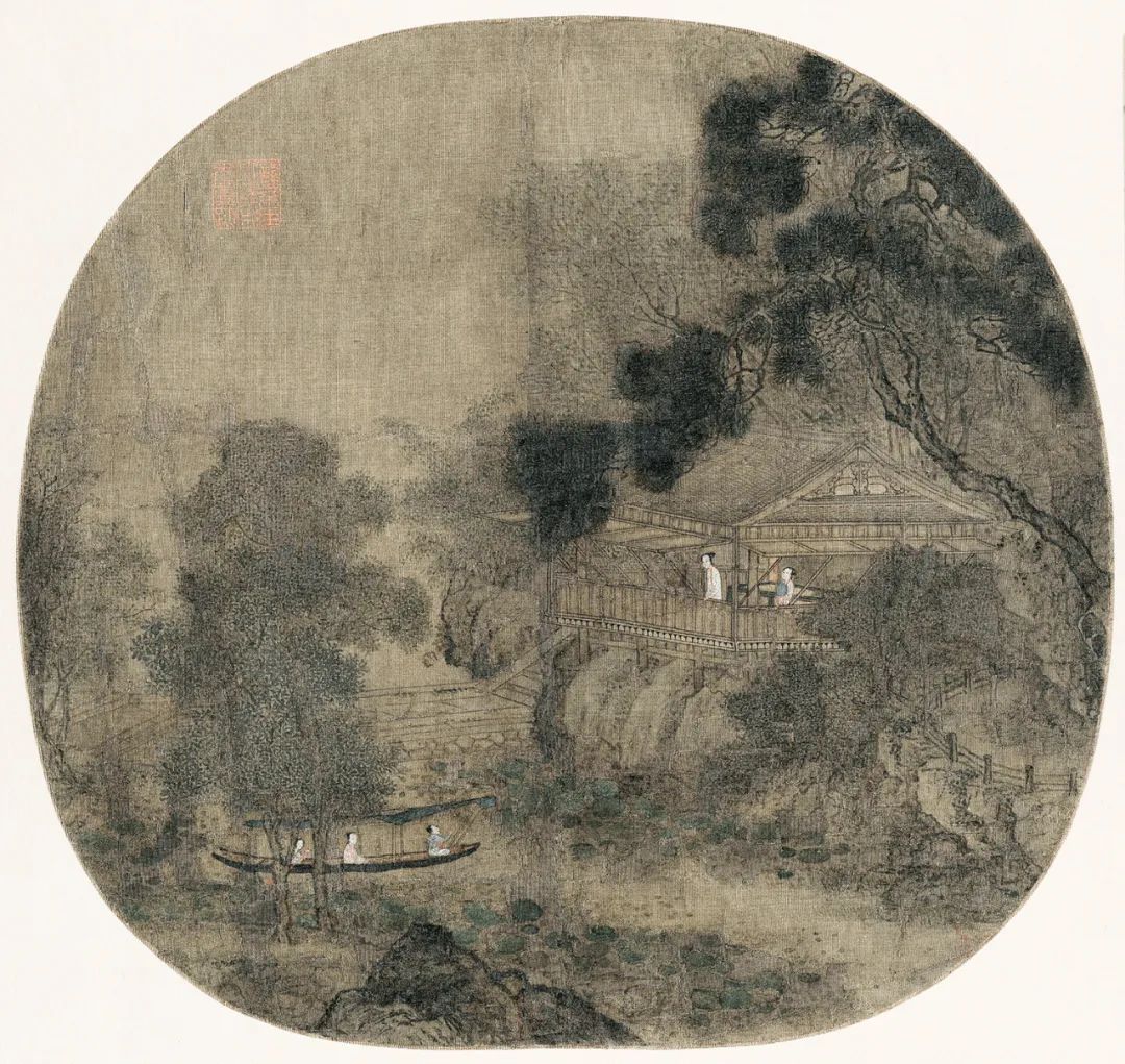 王诜的《莲塘泛舟图》(传)虽存争议,却以“未完成感”暗藏宋代文人画的精神密码。这幅绢本设色的24.3cm×25.8cm小帧,以残缺笔触勾勒出比完整更深刻的意境,恰似宋代文人“留白”美学的极致演绎。